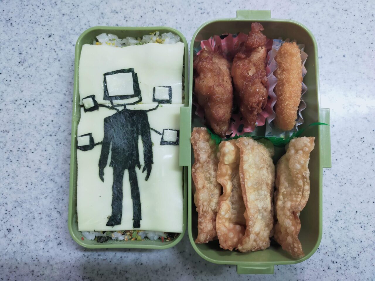一つ前のキャラ弁で息子から希望を受けていたもの、複雑さ&準備時間の関係で拒否してしまったこのタイタンテレビマン。